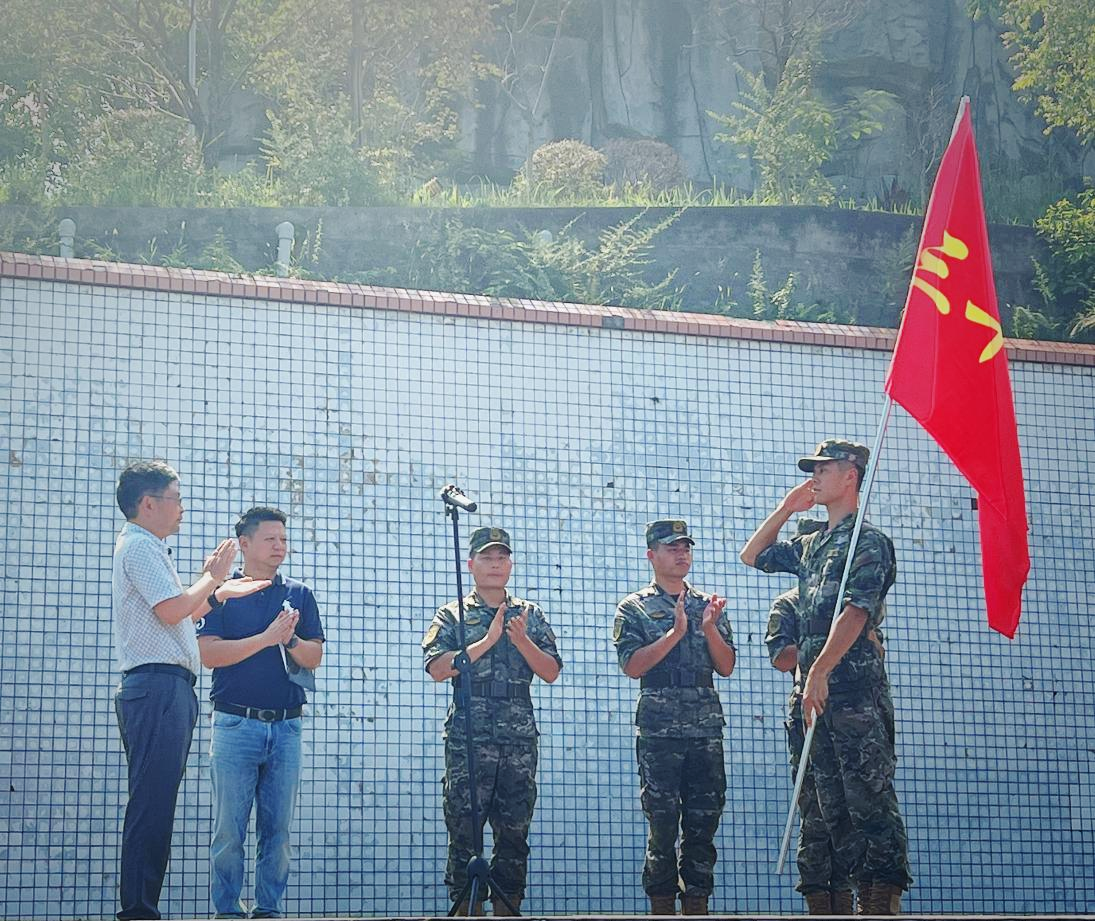 最后,公司经理张应良向连长授旗,为期一周的军训正式拉开帷幕。