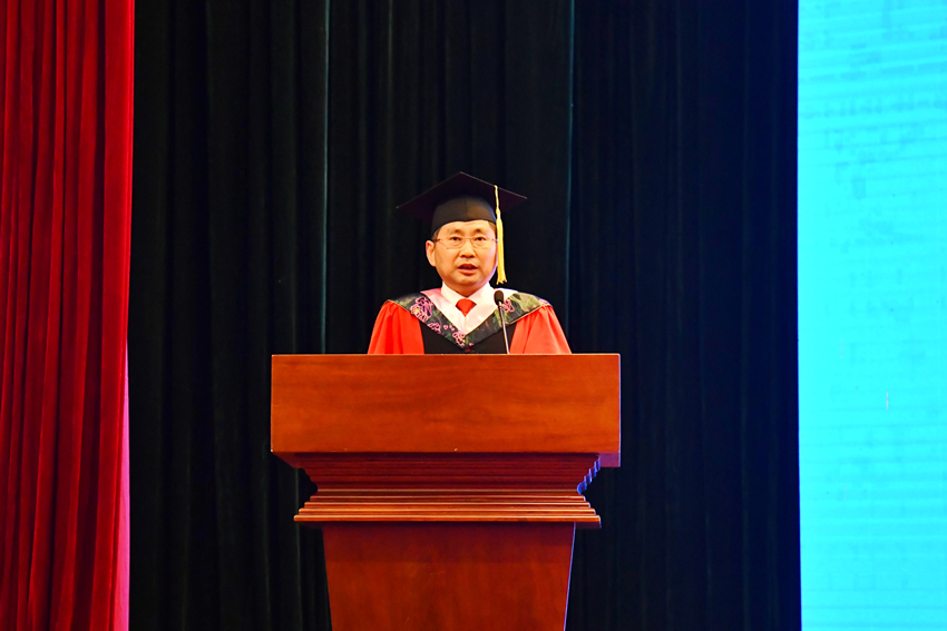庞新军博士作为教师代表发言。他衷心祝贺毕业生即将开启人生的新征程,并以情真意切、质朴无华的语言向同学们讲了老师的心里话,衷心希望同学们走好今后人生的每一步,热爱生活,激情澎湃,昂扬向上,为国家、为社会做贡献。