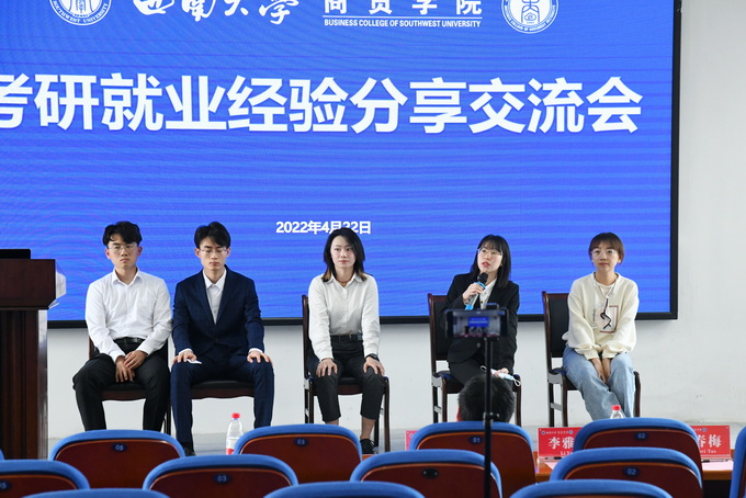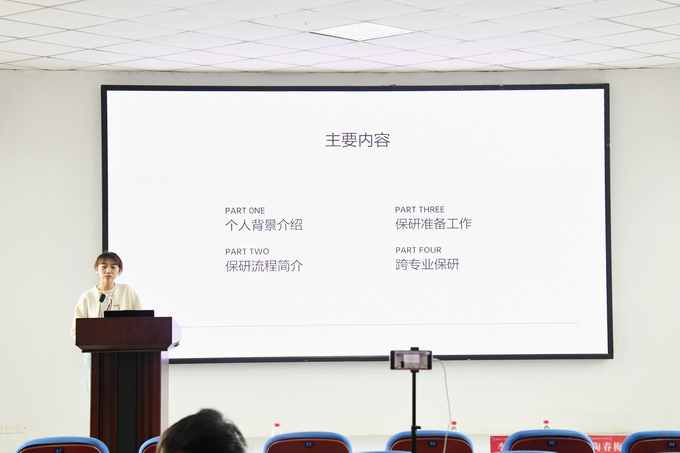 林金玉同学从自身经历出发,从考研的初心、公司和专业选择、信息获取、备考过程等方面详细介绍了自己的经历。张竞帆同学总体阐述了保研的基本流程,包括成绩要求、申请方式、时间节点等,并分享了跨专业保研的注意事项。卢游同学分享了考公面试时的经历,向学弟学妹们传授了面试技巧。孙启明同学强调了简历制作的重要性,建议学弟学妹要根据用人单位的人才需求去针对性地完善简历。刘蝶同学则分享了出国深造的经验,她以自身的留学准备为例,谈到实习经验对于海外名校的吸引力,建议学弟学们们要尽可能地丰富实习经历。