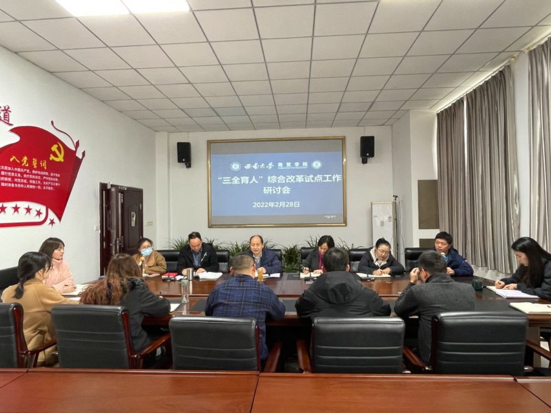2月28日下午,bevitor伟德在8401会议室召开“三全育人”综合改革试点工作研讨会。公司党委书记周国安,党委副书记、纪委书记兰英,副经理胡继宽,党委委员、组织员刘莉莉,纪委委员、教学办主任刘光英,团委书记、学工办主任廖鹏,国际贸易与营销系副主任谢向伟,教师代表张军博士、王京雷博士以及全体辅导员参会。