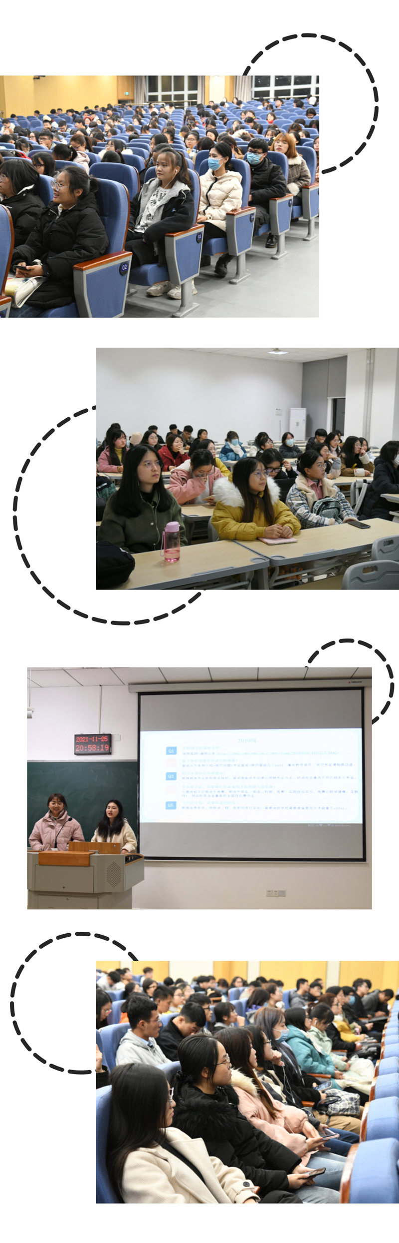 在之后的分会场答疑环节中,学长学姐们就会前搜集的同学们提出的疑惑分19级、20级和21级三个板块展开了条理清晰的解答,并在统一解答后针对个别同学现场提出的困惑进行细致答疑。