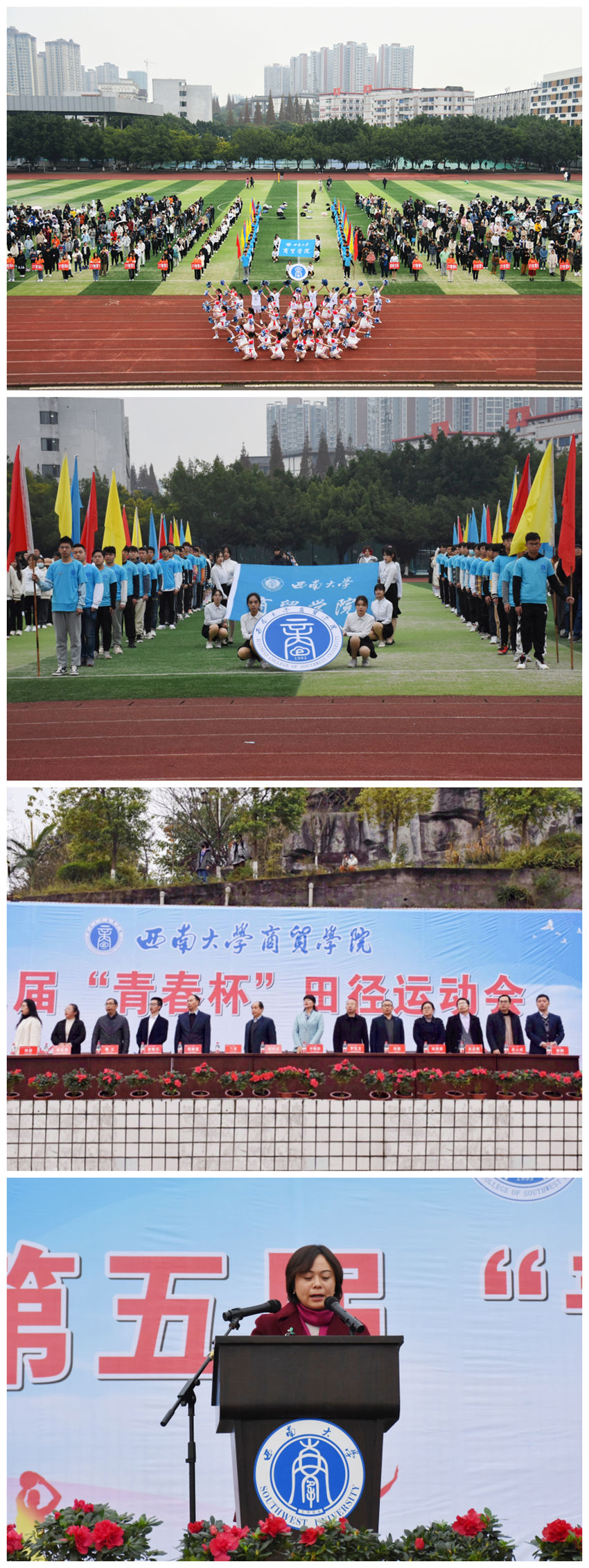 此次院运动会上,同学们奋勇争先顽强拼搏,各个班级团结一致齐心协力,共同展现了商贸学子的努力和风采。短短三天的时间里,同学们取得了优异成绩和道德风尚的双丰收,也希望同学们也能在接下来的学习生活中继续践行“奋勇争先,激扬青春”的精神!