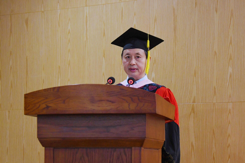 国际贸易与营销系副主任谢向伟作为教师代表发言。他与毕业生们分享了三点感悟:不断进步,争创一流业绩;不忘感恩,学会做人做事;不懈努力,实现人生价值。祝福同学们步入更广阔的天地,眼里有光,心里有海,目之所至皆是星辰大海,心中所期皆有春暖花开。