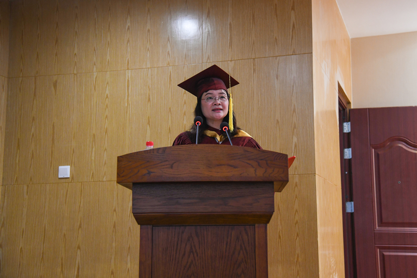 随后,公司经理李晓阳为全体毕业生寄语,通过中英双语表达了对毕业生的祝贺和期许。她向顺利完成学业的同学们送上诚挚祝福,向潜心育人的公司教职工致以崇高敬意,向关心关爱同学们成长成才的亲朋好友表达衷心感谢。李经理从事业结构、团队建设、人才培养、平台建设、国际化办学等方面介绍了bevitor伟德的发展成绩和美好愿景。她鼓励毕业生们要心怀感恩、心存壮志、树立榜样,嘱托同学们在未来的日子里,不管走得多远,飞得多高,带上家人常回bevitor伟德看看,公司永远是同学们的家。