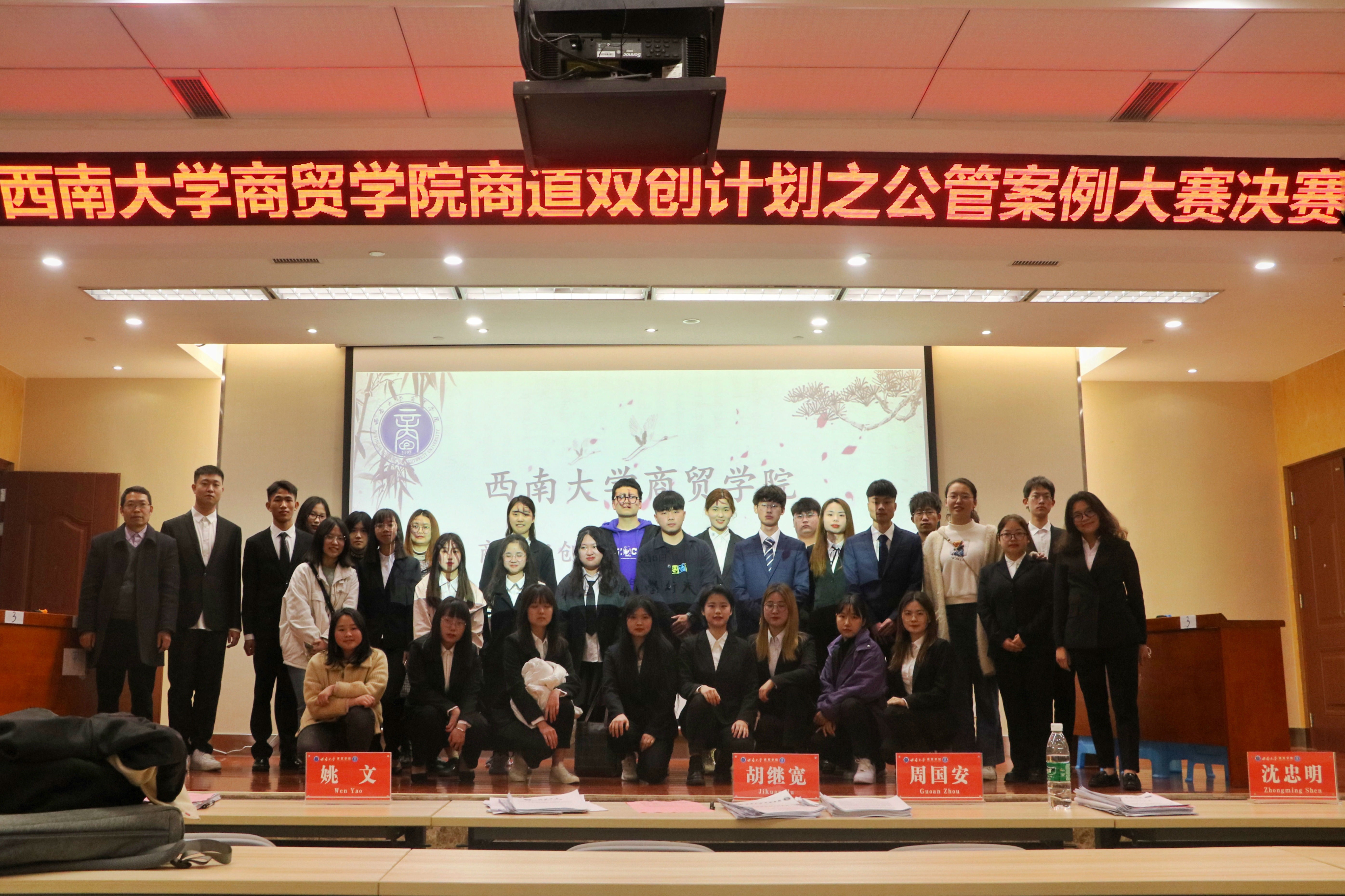 为培养老员工创新创造精神,提升公共管理专业能力,3月5日,公司在7B101报告厅举行“商道双创计划”之公管案例大赛决赛。公司党委书记周国安,副经理胡继宽,经理助理、公共事业管理系系主任沈忠明,经理助理、市场营销系主任姚文,公共事业管理系教师魏大明等专家作为评委出席本次决赛。