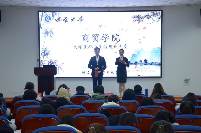 谭钦同学围绕职业规划定位、自身专业以及企业需要的“复合型人才”等方面展开,为同学们概述了成为大型企业中高层管理人员的规划。靳雨馨同学从自我认知和行业认知等方面出发,讲述了自己为今后考研和成为大学教育工作者做出的规划。杨思思同学通过职业性格、职业价值观和职业环境认知等方面的分析,分享了自己成为中小学英语教师的职业目标。