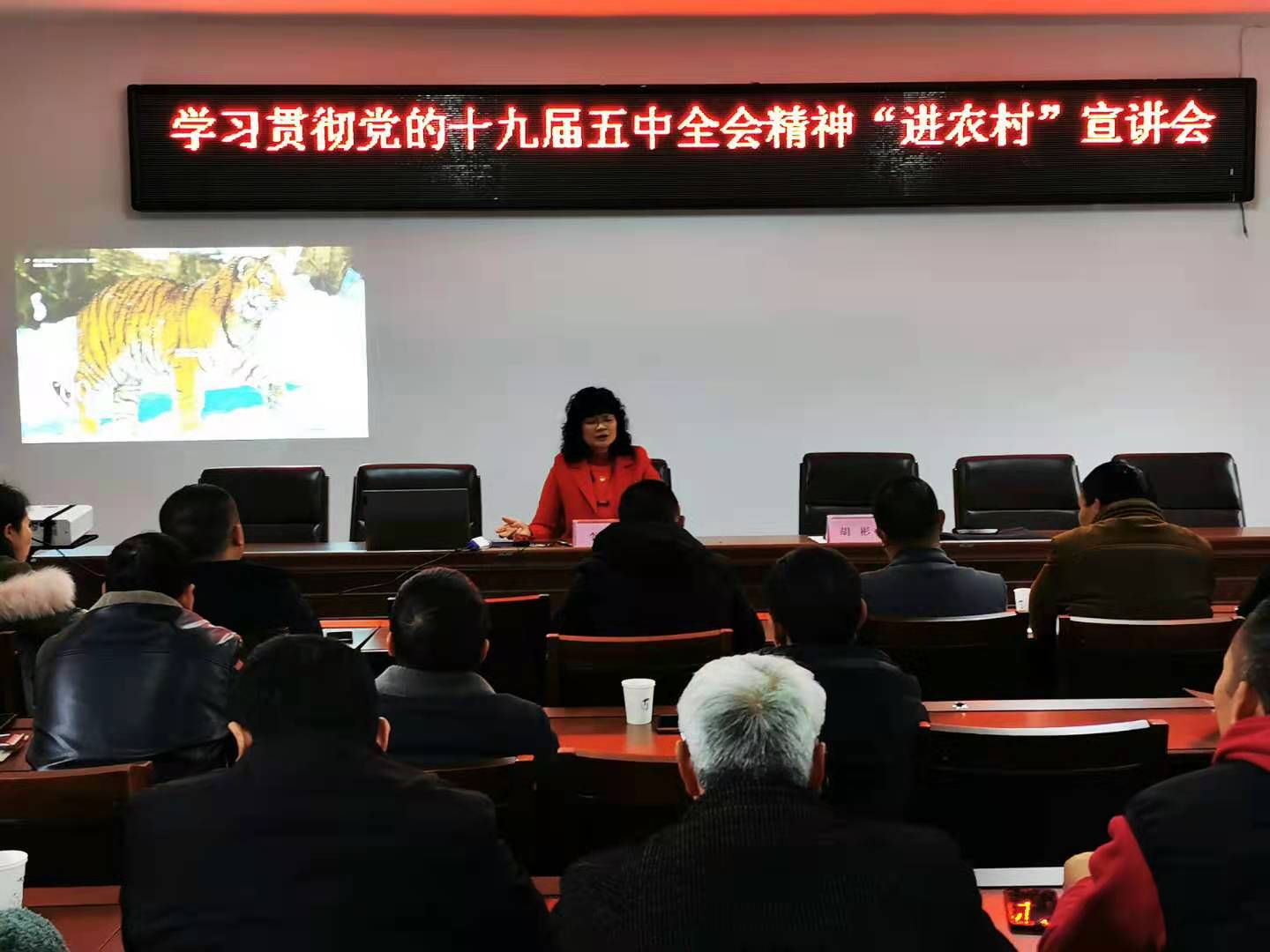 在河图镇长坪村,李晓阳教授用接地气的语言向当地的村社工作人员和群众讲解全会的召开背景及重大意义。