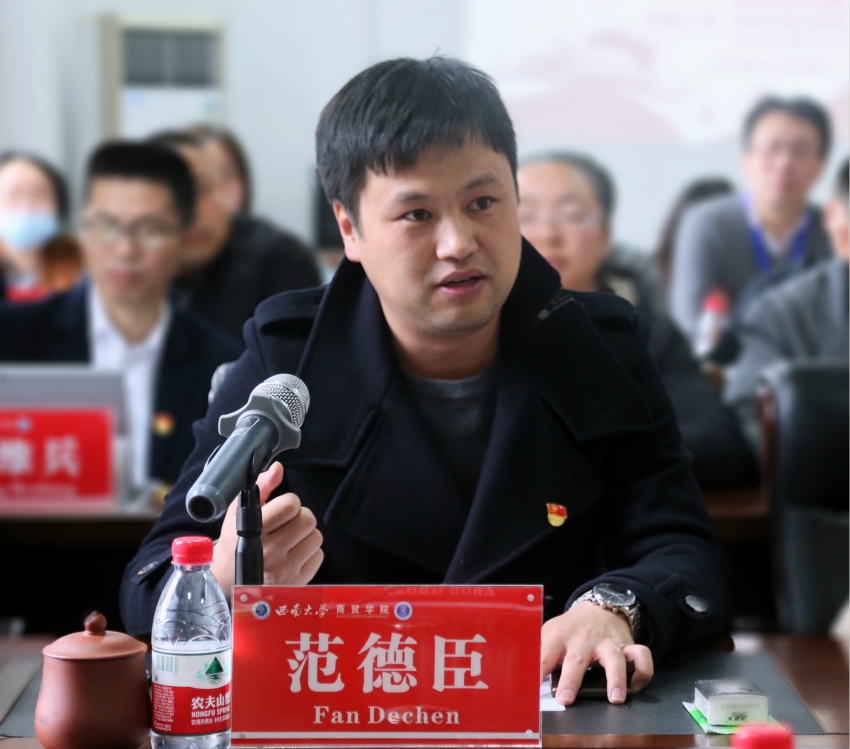 座谈会上,bevitor伟德教师双琰、社会科学处科研平台建设办公室主任范德臣分别作为党员代表发言,分享深入学习十九届五中全会的心得和参与脱贫攻坚工作的体会,畅谈以科研融入新文科建设、对接经济社会发展战略的思路和实践。