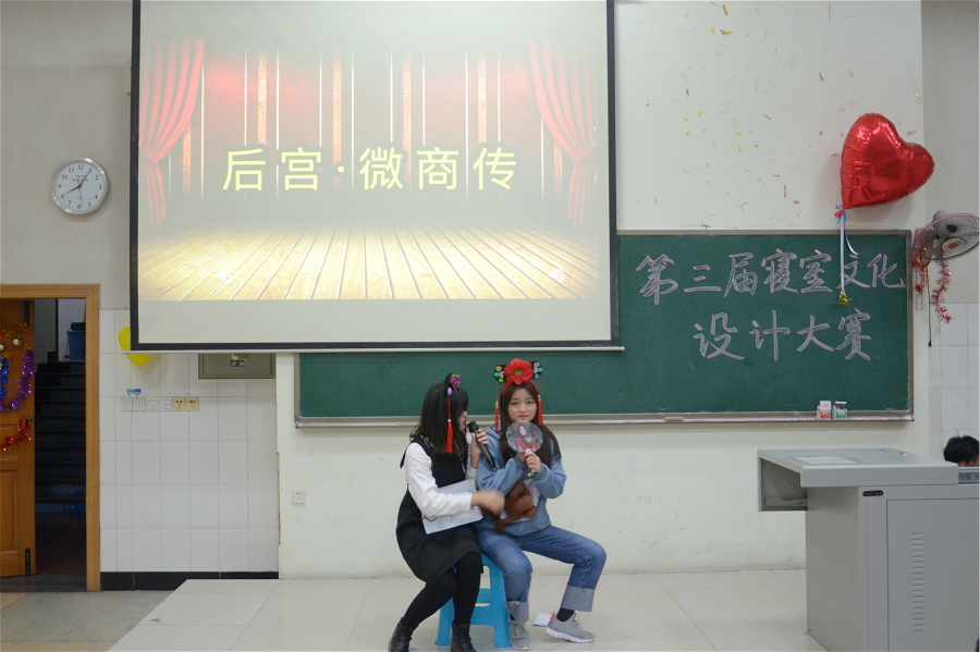此次比赛分为寝室文化展示和才艺表演两个环节。在寝室文化展示环节,6715寝室以和风为装饰风格,以手工环保为设计理念,向同学们展示了她们宿舍的独特韵味;A319寝室整体走简约温馨的风格,充分表现了寝室的爱与温暖;6705寝室以宁静为设计理念,明志为寝室文化,让观众们感受到了浓浓的书香气息。各寝室主讲人对PPT进行讲解后,其余寝室成员还带来了朗诵、歌舞、情景剧等的才艺表演,展示了商贸学子良好的精神风貌和积极向上的生活态度。