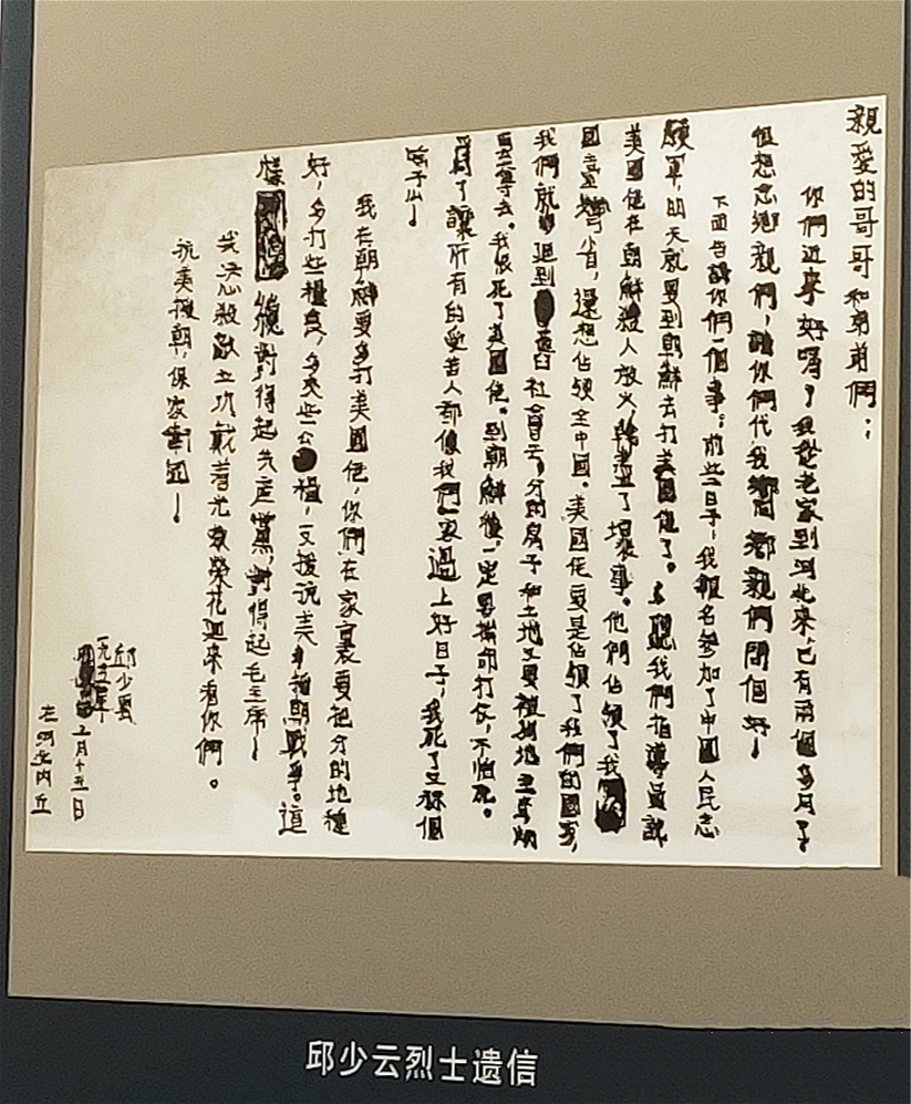 邱少云烈士遗信