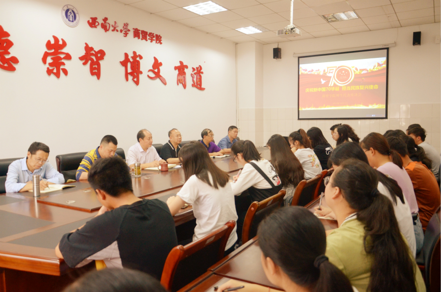 10月1日下午,公司召开“庆祝新中国70华诞,担当民族复兴使命”师生代表座谈会,党政领导代表、教师代表、党员代表和员工代表齐聚一堂,与会师生包含了60后、70后、80后、90后和00后,共话“我和祖国”。