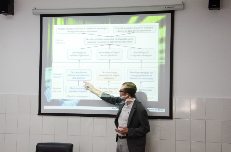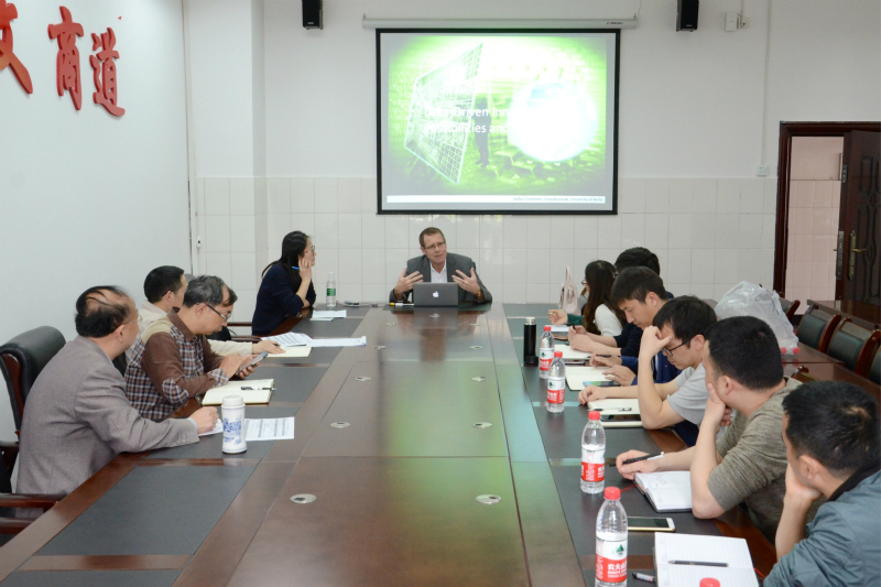 16日及17日下午,Stefan教授在公司第二会议室主持开展了两次研讨会,分别以“数字驱动的服务创新”和“数字驱动的服务创新:管理包含多个业务伙伴的合作项目”为主题。公司副经理罗先文,院经理助理、公共事业管理系主任沈忠明,经理助理、市场营销系主任姚文,计算机科学系副主任肖兴江,实验技术中心副主任邱长生及其他教师出席研讨会。