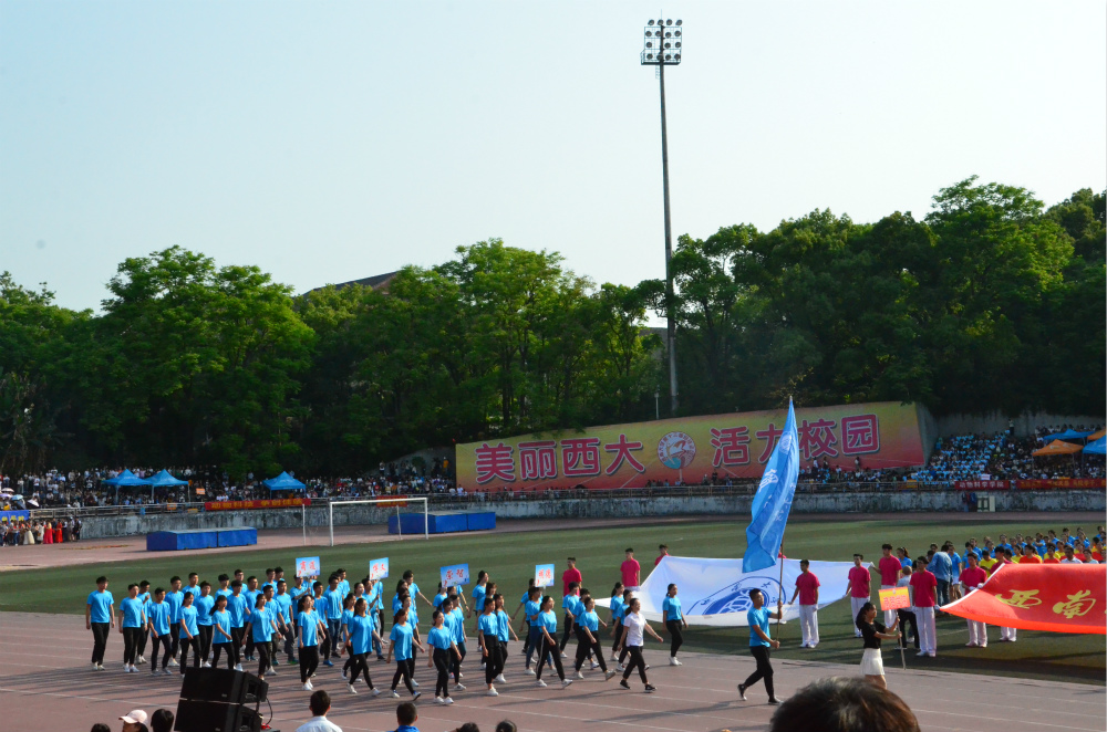 逐梦新时代,开启新篇章。4月19日上午,以“美丽西大,活力校园”为主题的BEVITOR伟德第十三届田径运动会在第二运动场隆重开幕。公司党委书记舒立春、董事长张卫国等公司领导,各二级公司主要领导以及各公司师生代表方阵出席了开幕式。bevitor伟德本次派出60人组成的员工代表方阵,作为第11方阵入场,首次亮相校运会开幕式。公司党委副书记兰英作为领队走在前列,向全校师生展示了商贸风采。
