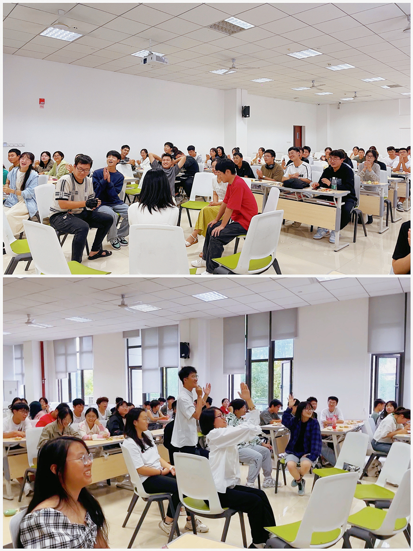 活动组织开展了多个趣味互动游戏,现场新生一起共话大学新生活、品尝月饼糕点,踊跃参与趣味游戏,互相加深了解,增进情谊,共度佳节。