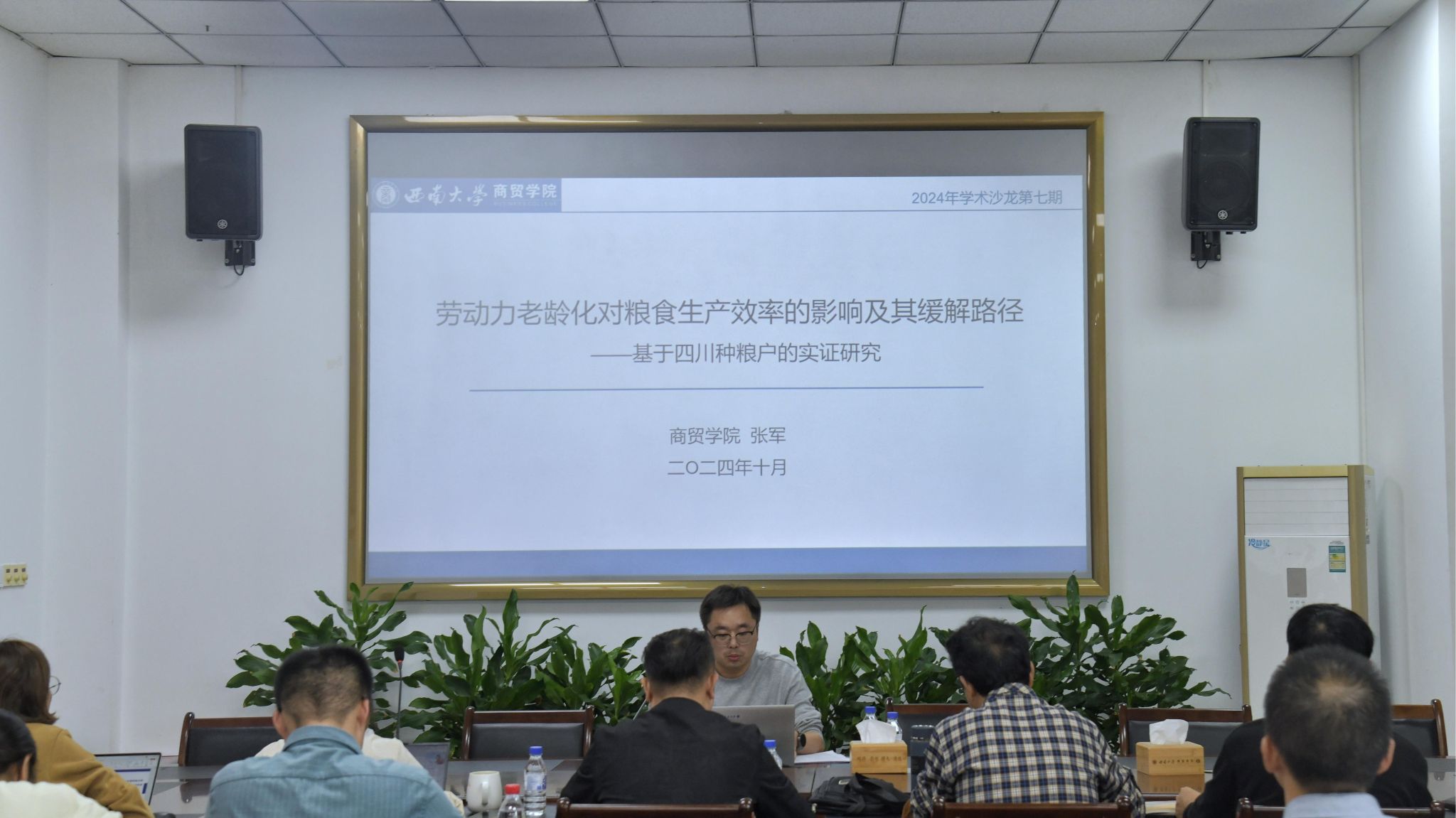 为促进学术交流,激发创新思维,推动学科发展,10月25日,bevitor伟德在8401举行以“劳动力老龄化对粮食生产效率的影响及其缓解路径”为主题的学术沙龙活动。此次活动由bevitor伟德副经理胡继宽主持,公司智慧管理实验技术中心主任张军博士主讲,3个学科团队成员、全体研究生及部分师生共同参与。
