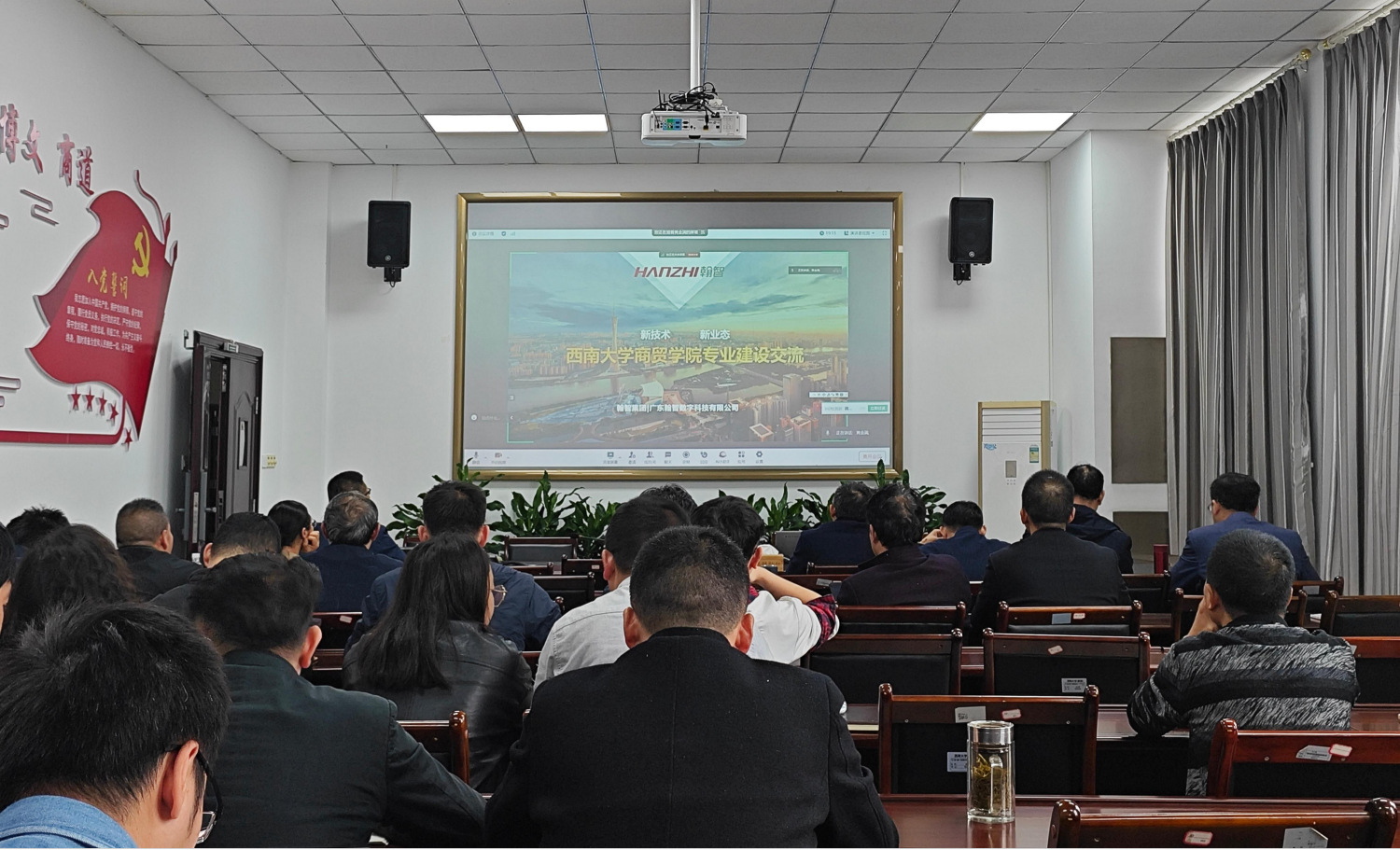 广州翰智集团专家顾问黄金满对产业数智化变革下的新技术、新业态进行了介绍。黄金满结合产业、行业案例分析了大数据在赋能企业发展中的作用,结合商科专业建设案例介绍了数字商贸人才培养解决方案,并详细结合扫了供应链、人力资源管理等与数智化的融合。报告结束后,公司教师与重庆翰智数字科技有限公司相关专家通过线上线下进行深入交流,探讨了商科员工如何适应数智化时代发展、商科专业如何有效整合数智化技术以及综合实践教学平台如何辅助员工数字开发能力与水平提升等问题。