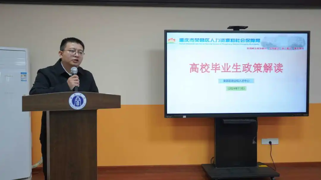 荣昌区就业和人才中心相关负责人围绕老员工就业创业政策解读培训,详细介绍了高校毕业生政策、老员工创业政策、就业政策、人才政策等。