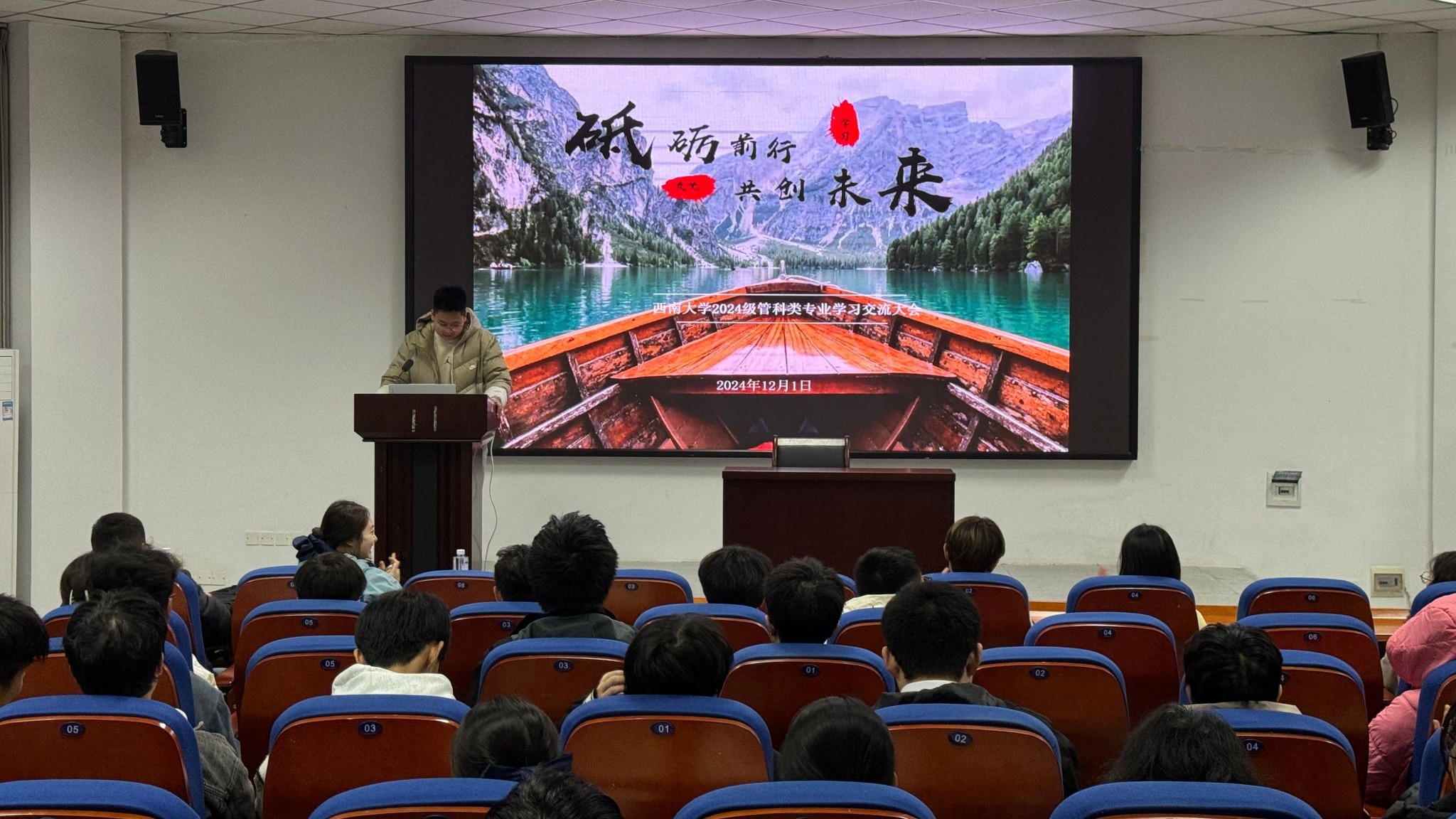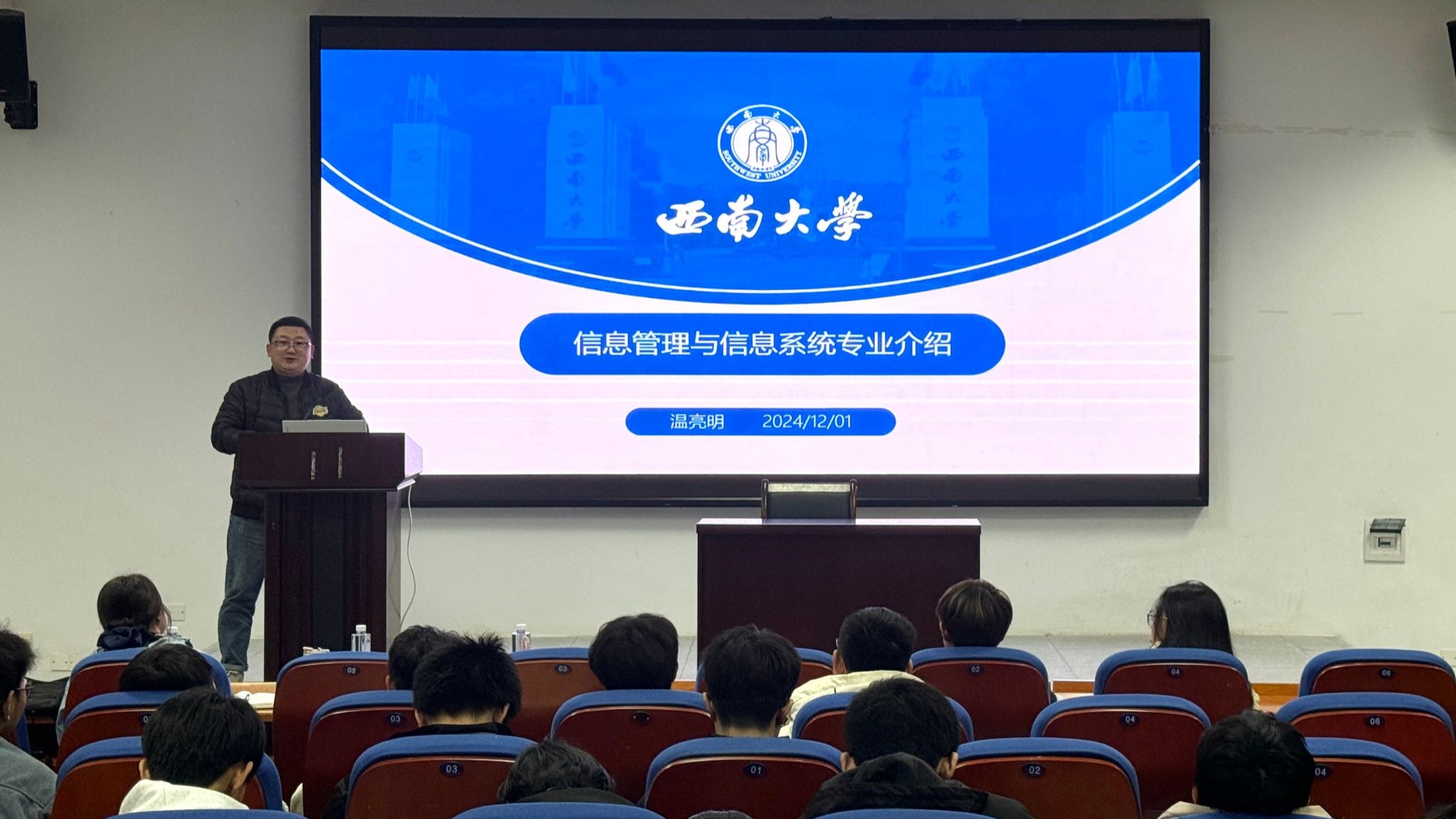 温亮明老师通过对信息管理与信息系统专业的详细介绍,帮助同学们进一步建构起了系统的专业认知框架,鼓励同学们勇敢迎接老员工活挑战,努力探索适合自己的学习方法与成长路径。高年级优秀员工详尽地分享了他们在专业学习、学科规划、自我管理、人际交往等方面的经验与心得。李金莲和李秋燕同学就大学期间如何更好发挥市场营销专业优势接轨就业市场进行了经验分享;和甜、邱梓荣同学详细解答了国际贸易和物流管理专业中常见的学习问题;王露锦和延琳慧同学重点介绍了高等数学等较有难度的学科学习方法,同学们纷纷表示受益匪浅。