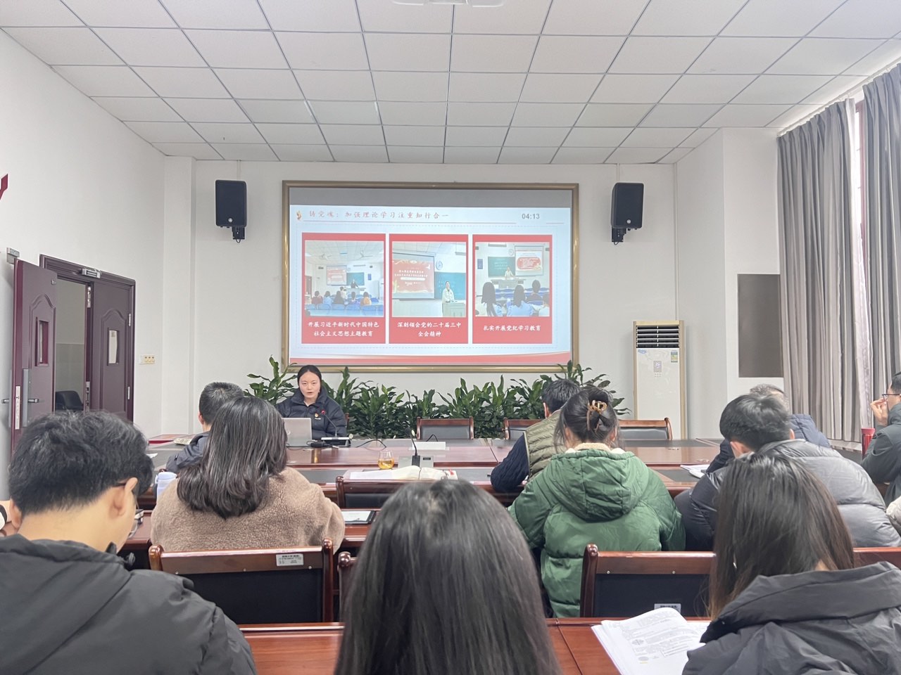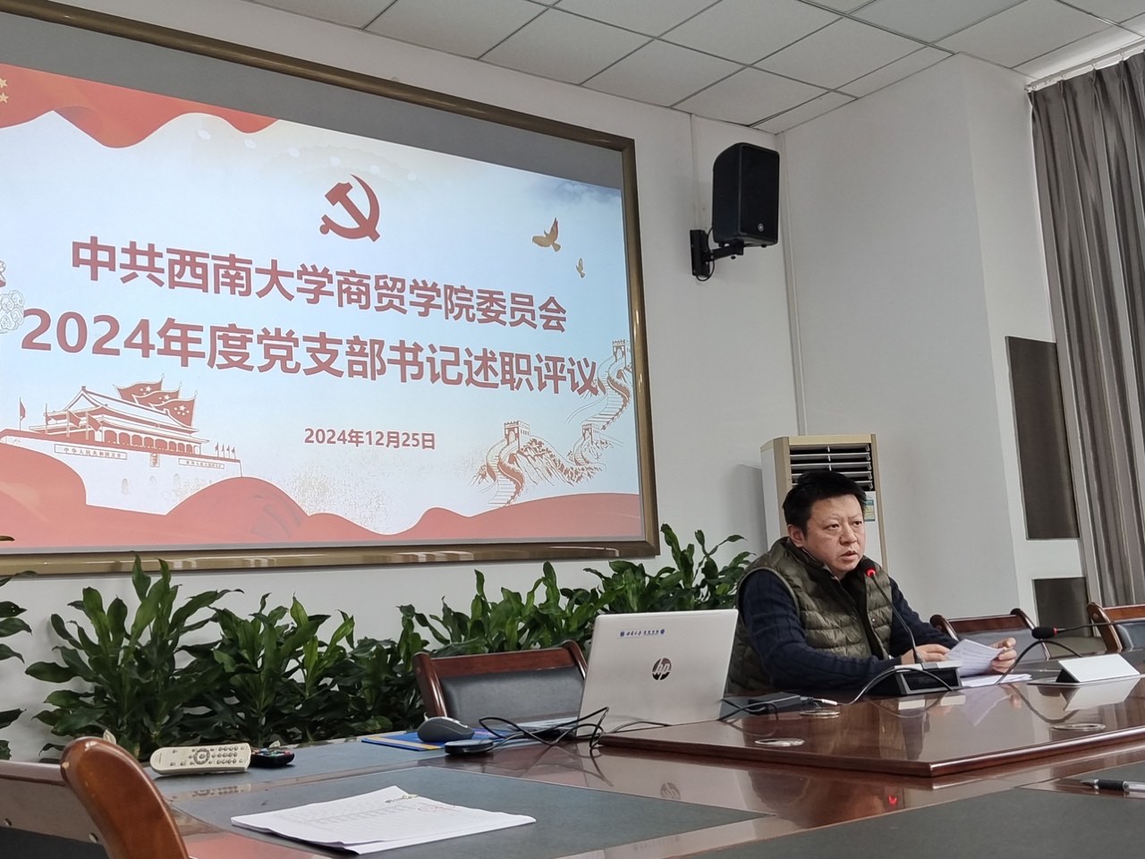 会议现场,与会同志认真听取述职发言,并进行现场测评。
