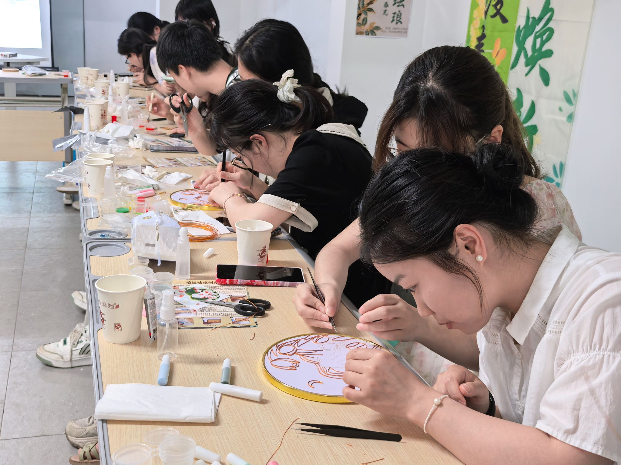 活动最后,同学们围坐在一起,分享创作心得,交流着制作过程中的感悟与体会,文化的魅力在这一刻尽情绽放。同学们纷纷表示,亲手制作掐丝珐琅,不仅让他们感受到了谷雨文化的内涵,更深刻理解了非遗技艺的独特魅力。