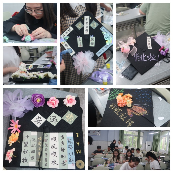 活动环节设置“拼贴诗”“留声墙打卡”“学士帽DIY”三大主题体验区,毕业生党员们自由组队参与,以碎片拼圆梦,凭声音传真情,用亲手留青春。让此刻的温情定格,让党的光辉永远照耀心头。