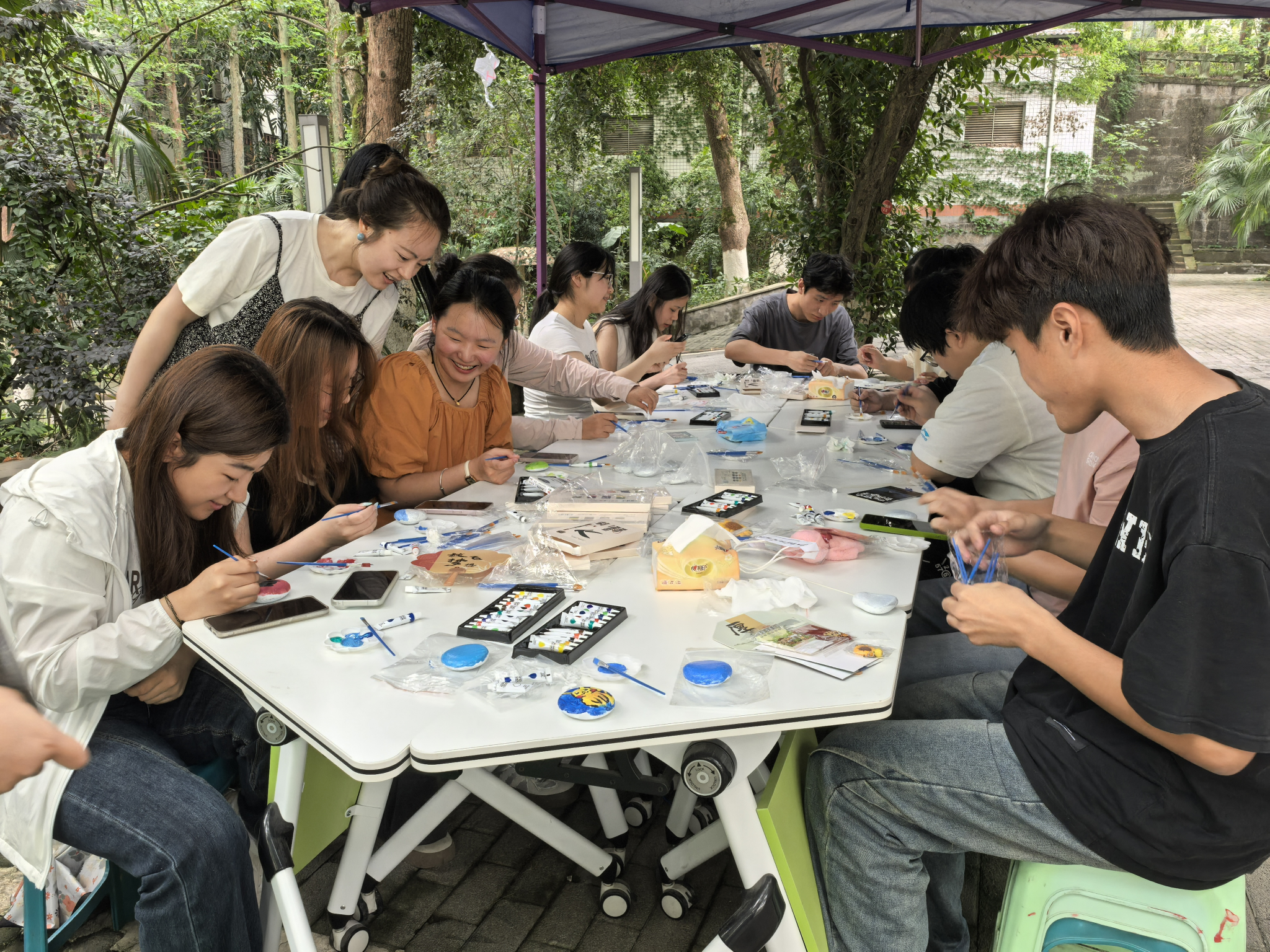 走进“创意魔法屋:石头画”的奇妙空间,一颗颗平凡的鹅卵石在员工们的手中,在五彩斑斓的丙烯颜料的装点下,摇身一变成为独一无二的艺术作品。创作的过程,既是压力的释放,更是创造力的尽情绽放。而这些承载着创作者独特情感的画作,还能进一步制作成精美的饰品或摆件,成为永恒的美好纪念。