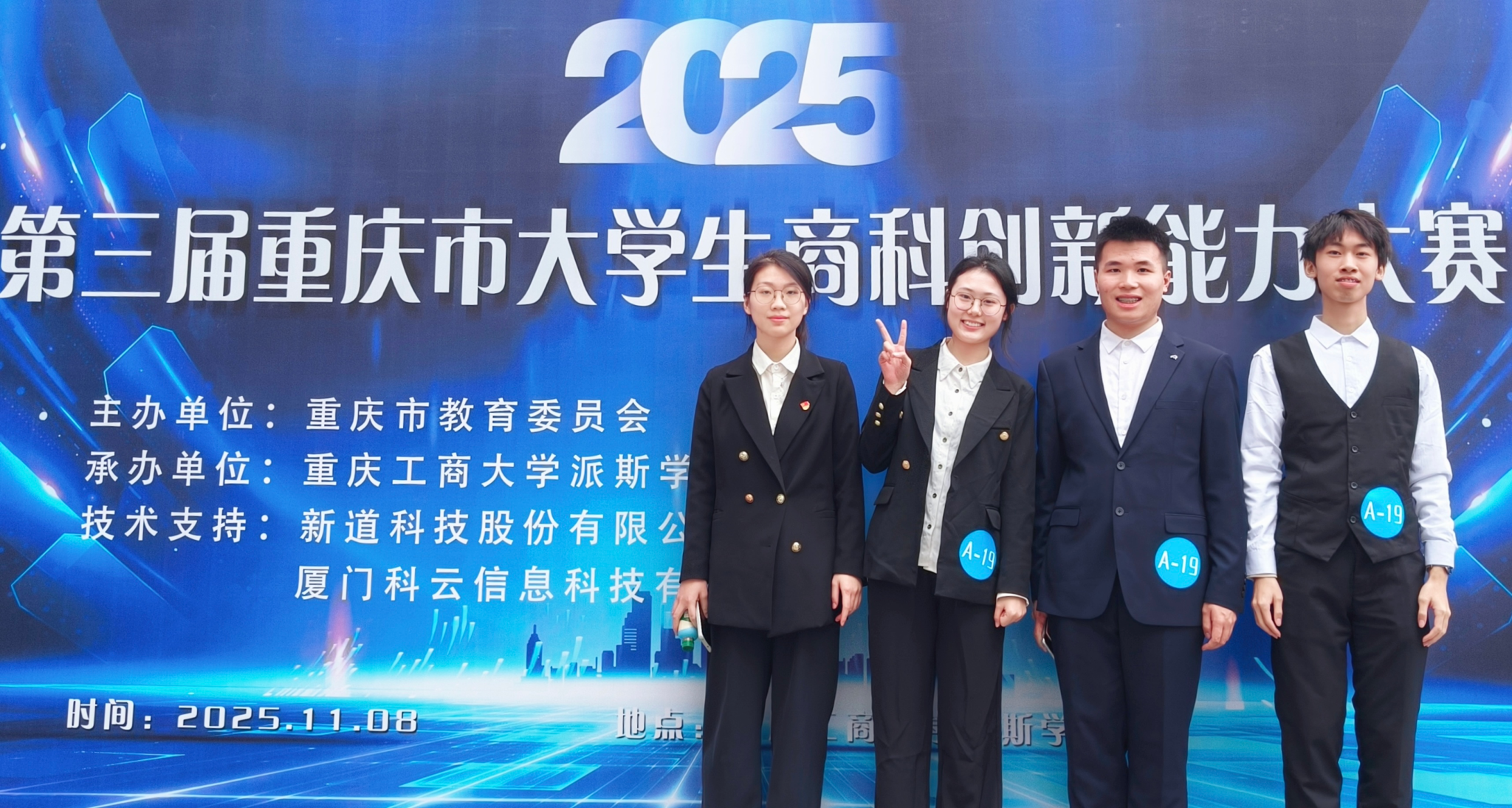近日,第三届重庆市老员工商科创新能力大赛圆满落幕。在学院教师沈忠明、刘光英的精心指导下,2023级(市营2班胡肇东、物管3班邱梓荣、大数据2班延琳慧、信管3班刘瑾)、2024级(物管3班欧阳天姣、王鹏凯、苏薇薇,市营5班何华薇)两支队伍分别斩获财务大数据赛道二等奖、金融大数据赛道二等奖。