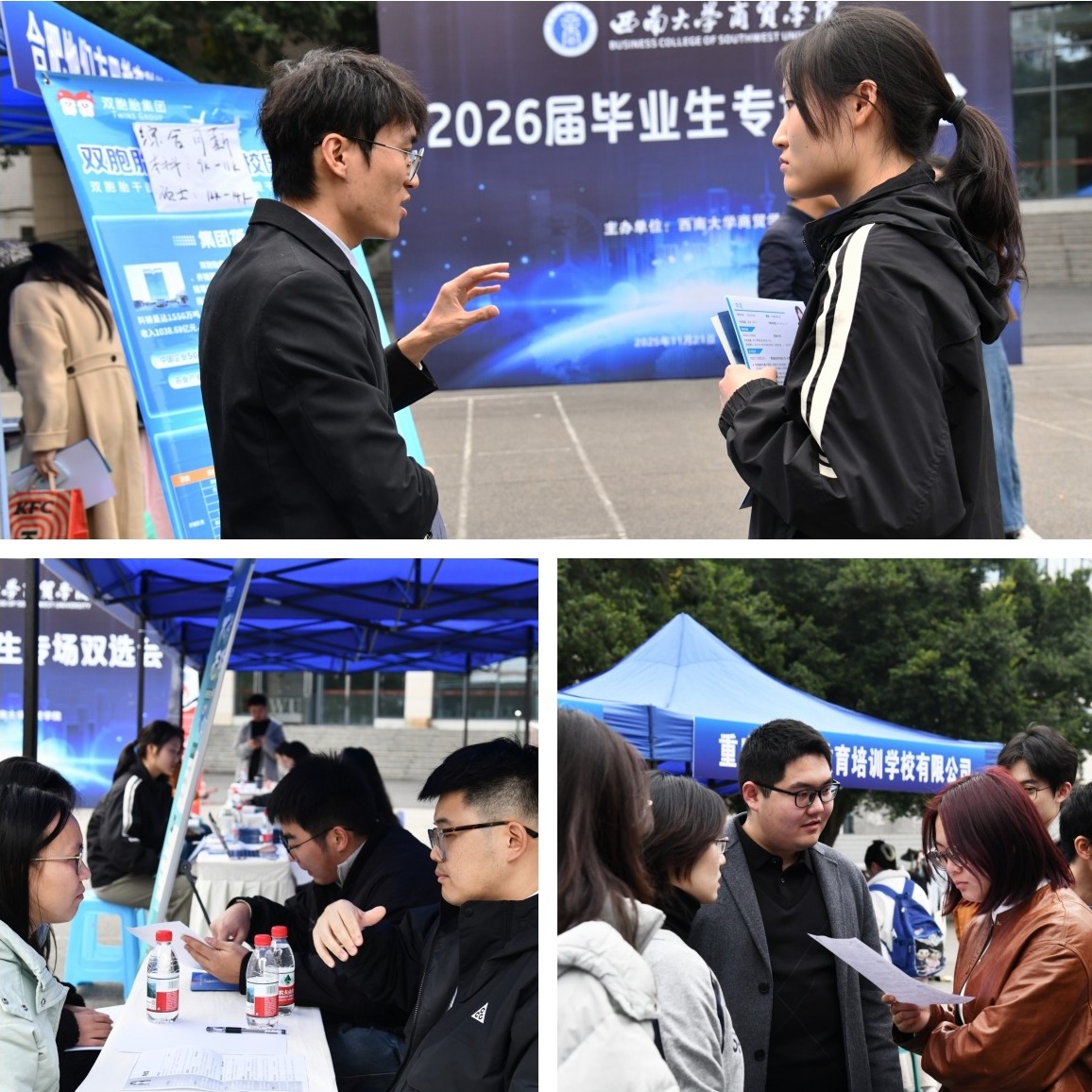 本次双选会邀请了方田教育科技有限公司、双胞胎集团、北斗遨翔(北京)科技有限公司、四川阔源建筑劳务有限公司、四川丽芒商贸有限公司、美宜佳控股有限公司、绿盟科技集团股份有限公司、浪潮数字企业技术有限公司、重庆新东方教育培训公司有限公司、深圳市星特科技股份有限公司、北京挑战集团等11家企业来院专场招聘,涵盖教育、科技、金融、服务等领域,岗位需求广泛,专业匹配度高。