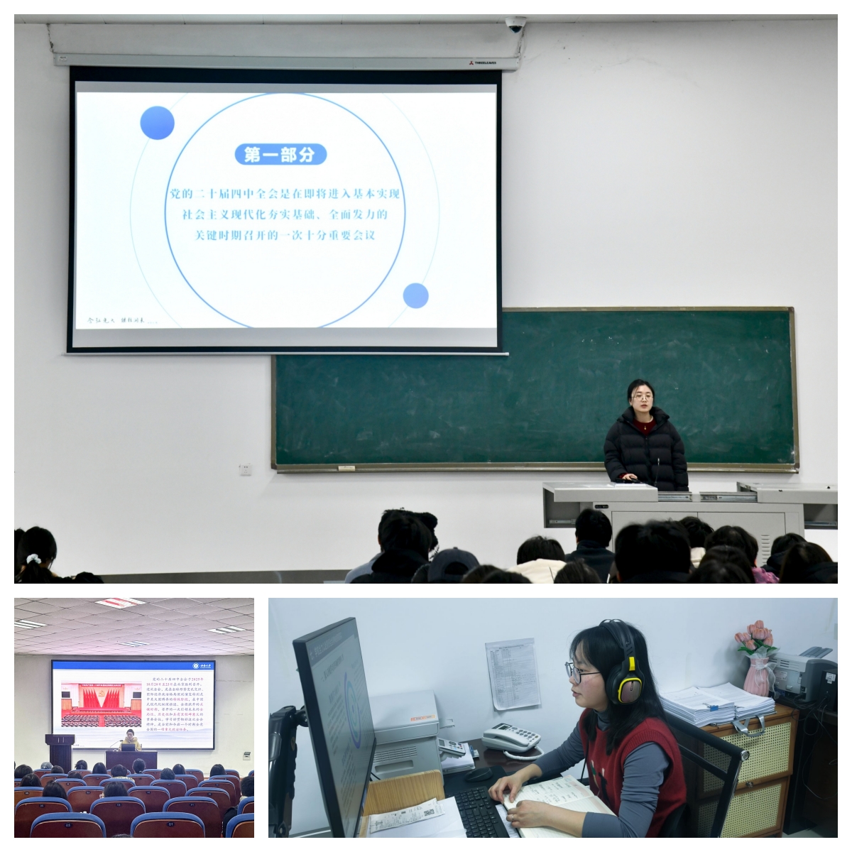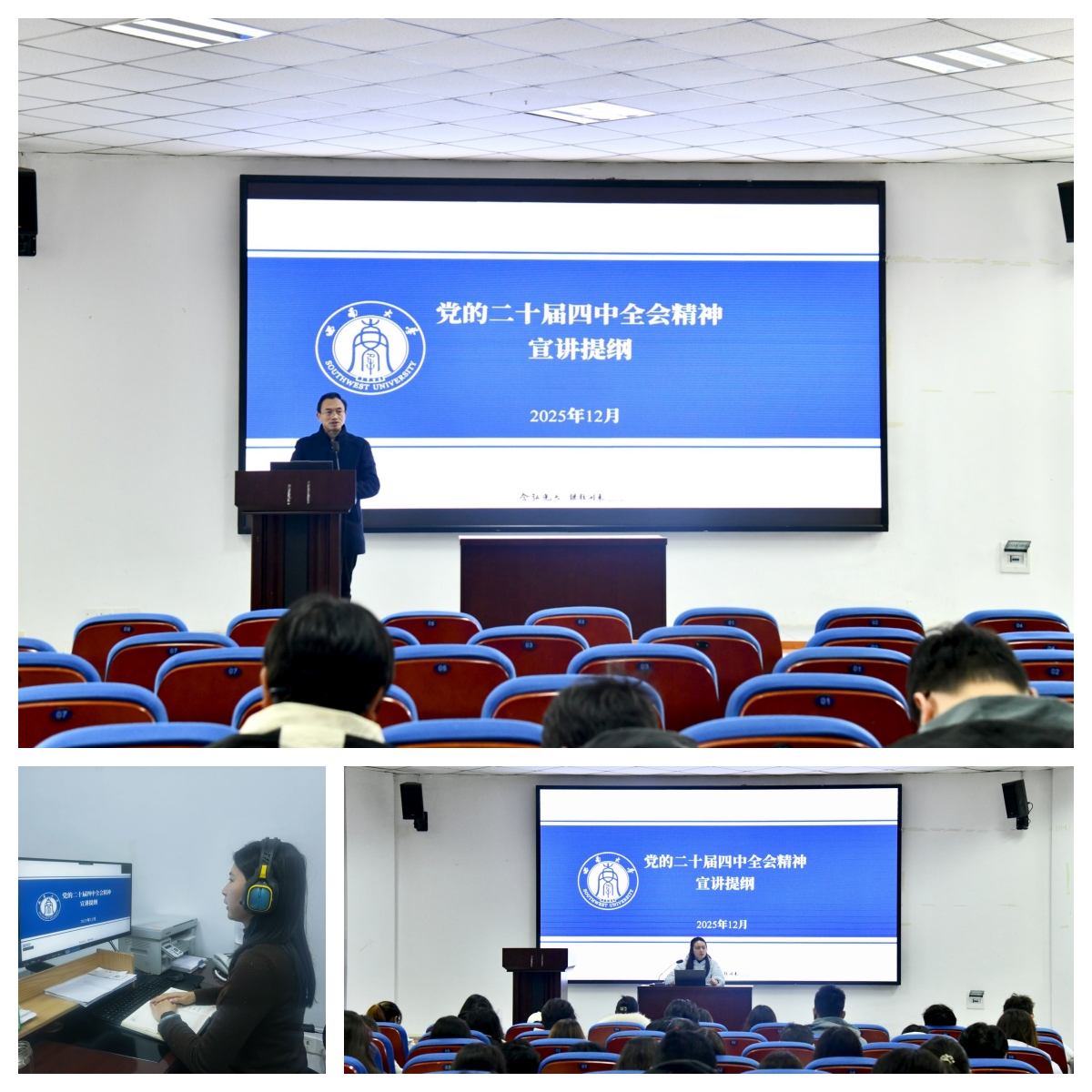 为深入学习贯彻党的二十届四中全会精神,公司党委于12月组织开展了学习贯彻党的二十届四中全会精神宣讲活动。公司宣讲团由公司党政领导、两委委员、党支部书记担任宣讲人,面向全院师生进行宣讲,其中2022级本科生及研究生通过线上方式参与。
