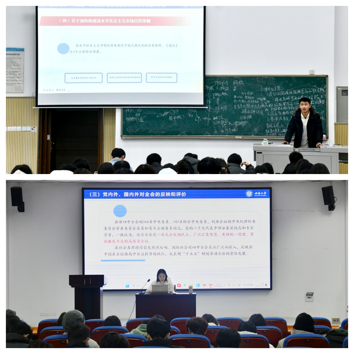 各宣讲人紧扣党的二十届四中全会精神的核心要义,从大会召开的时代背景和重大意义入手,结合详实的理论分析和生动的实践案例,对党的二十届四中全会精神进行全面系统、重点突出的解读。宣讲立足重庆市的战略定位和发展实际,将党的二十届四中全会精神的贯彻落实与地方经济社会发展规划有机结合,详细介绍重庆在推动高质量发展、深化改革开放、提升民生保障水平等方面的政策导向和具体实践,引导师生深刻认识个人发展与时代进程、国家命运的紧密联系。宣讲人还宣讲了公司贯彻落实全会精神的工作举措,全面呈现公司学习贯彻全会精神的创新实践和进展成效,营造良好的学习宣传贯彻全会精神的浓厚氛围。