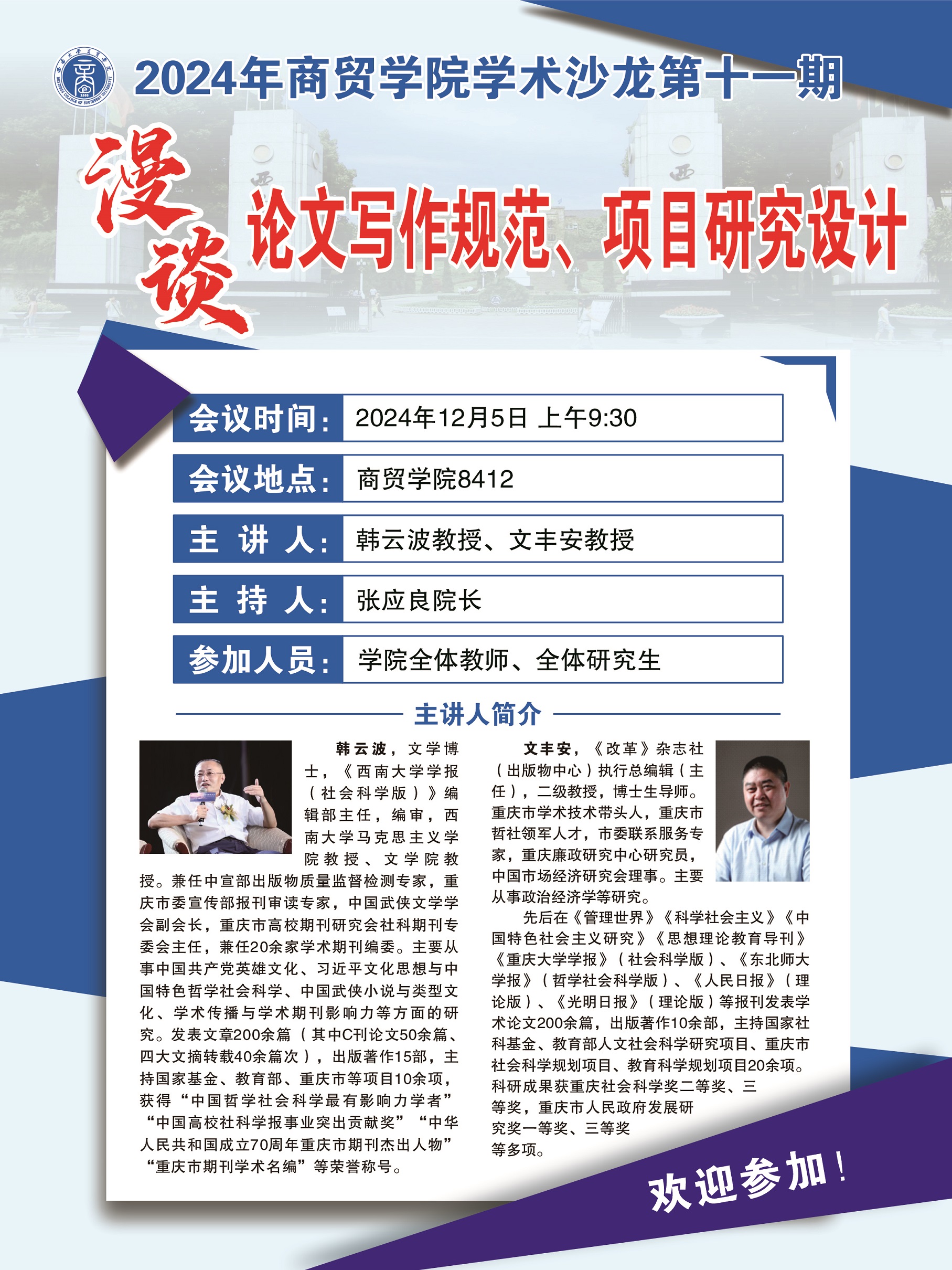 学术沙龙:漫谈论文写作规范、项目研究设计