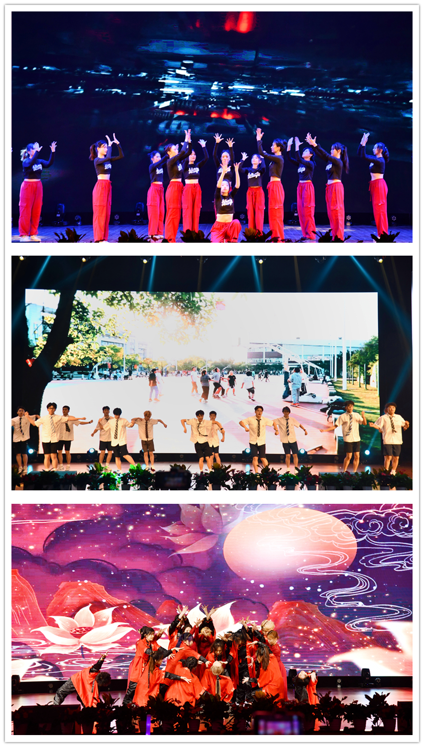 爵士舞《青春逐梦惟笃行》、《嬿婉莲步醉游龙》、街舞《意气迎风赞青春》伴着潮流的节奏,充分展示出商贸学子的青春活力与朝气蓬勃。