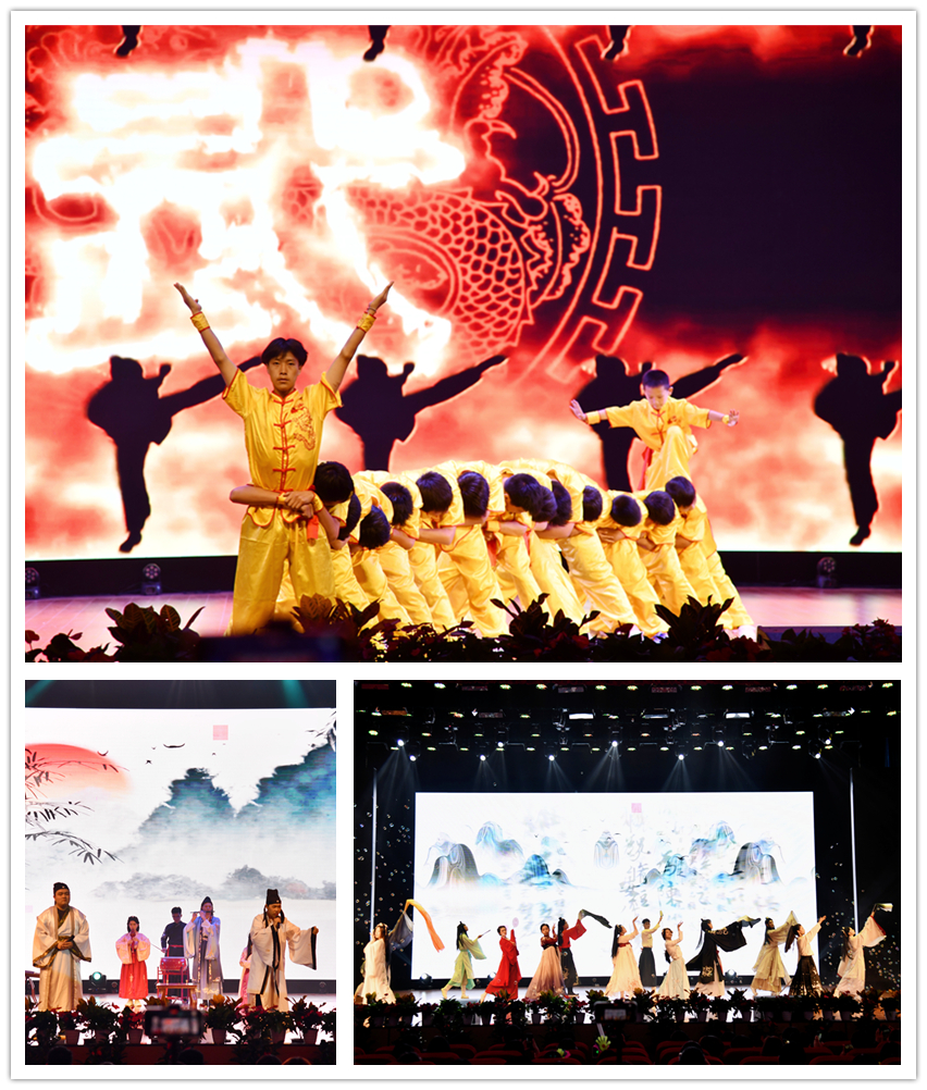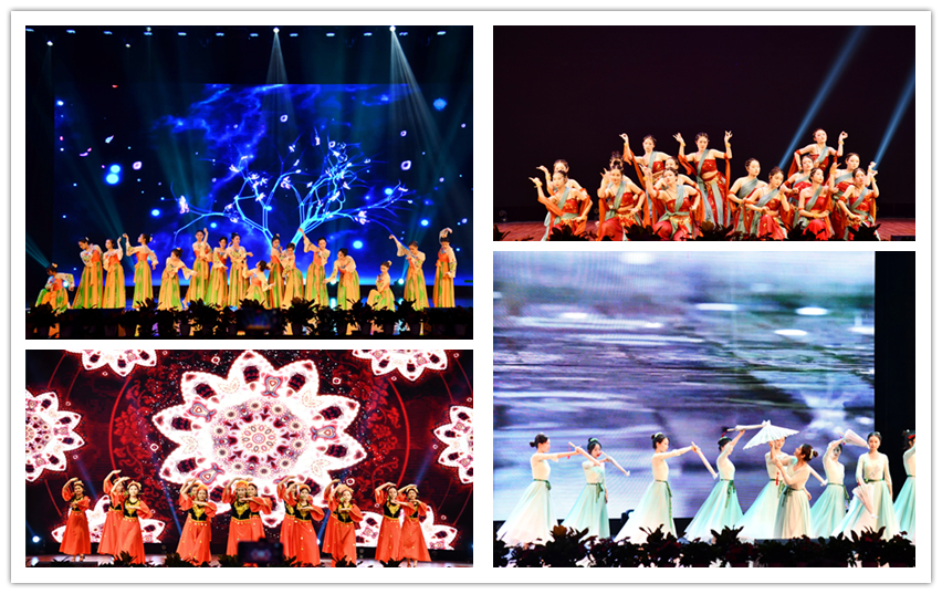 晚会上,歌舞、朗诵、武术等节目形式丰富、内容创新,为观众带来一场视听盛宴。维吾尔族舞蹈《旋腰衔花传情意》、敦煌舞《盛世胡璇舞千年》、古典舞《烟雨春色满神州》、《盛唐华韵织锦绣》展现了浓郁的民族风情和丰富多彩的民族文化,带领观众感受盛唐之繁华和精彩。